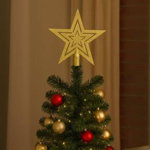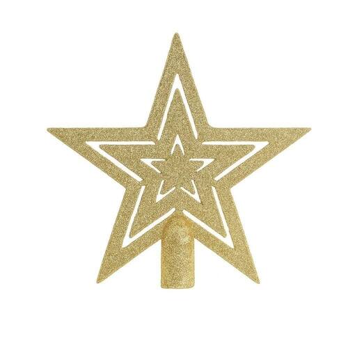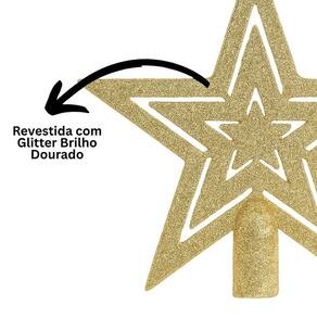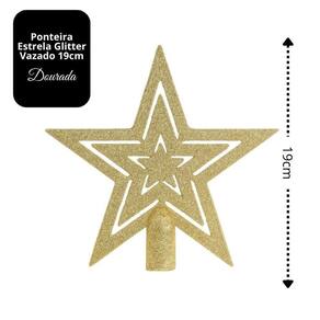 Estrela Ponteira Dourada Glitter Vazado 19cm Enfeite para Topo de Árvore de Natal