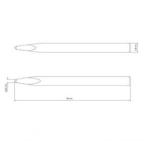 Modo de uso: ;Use óculos, luvas e outros equipamentos de proteção de acordo com a tarefa a ser executada. Utilize talhadeiras e ponteiros em superfícies ou componentes de dureza inferior a suas arestas de corte ou pontas. Descarte qualquer talhadeira ou ponteiro que apresente rachaduras, sinais de uso excessivo ou que tenham a face de impacto deformada. Golpeie as talhadeiras e ponteiros perpendicularmente às faces de impacto. Armazene em local limpo e seco.