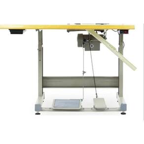 As máquinas de costura industrial acompanham estante com regulagem de altura que seguem os padrões de conforto e ergonomia para o operador, além de tampo em madeira revestido em fórmica