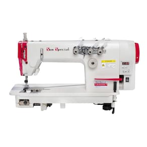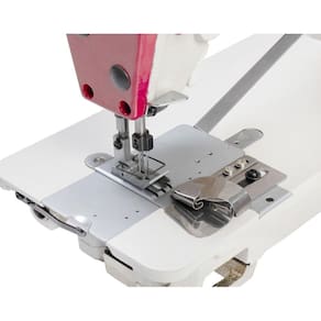 Reta 3 Ag. Ponto Corrente - Motor Direc Drive 220v Máquina de ponto corrente 3 agulhas, Com parada de agulha e controle de velocidade,: Cpu acoplada ao cabeçote, OBS: calcador pé de galinha. ESPECIFICAÇÕES Função: Fechamento lateral Distância entre Agulhas: 6,4 mm Número de Loopers: 3 Quantidade de Fios: 6 Quantidade de Agulhas: 3 Base: Plana- tipo reta Voltagem: 220v Velocidade: 5.500 rpm Tipo de motor: Direc Drive 220v Tipo de Agulha: TVX7 #14 Tamanho do Ponto: 4 mm Lubrificação : Automática Altura do Calcador: 10 mm
