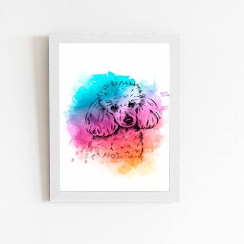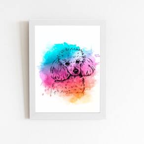 Poodle Cachorro Colorido Quadro Moldura Branca 60X40Cm
