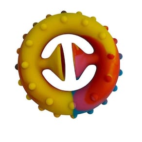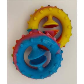 Esse anel de silicone alia a necessidade de apertar algo com o barulho de estalo que as ventosas centrais fazem. E se não quiser barulho, é só apertar do outro lado. Esse é literalmente um fidget + pop it brinquedo de inquietação e de estalar . Trabalha com diversos sensoriais: tatil, visual e auditivo. Ele é super macio, anatômico, portátil, ajuda a exercitar a mão.