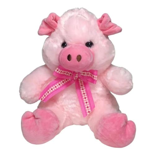Porco de pelúcia macia rosa com laço - 25 cm 2 cores