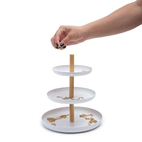 Esse é o porta-acessórios de metal e bambu 20cm da OIKOS. Mais organização: ótimo para armazenar e organizar anéis, brincos, pulseiras e outros acessórios. com os itens sempre à vista, fica mais fácil encontrar aquele anel na hora de se arrumar ;) Multiuso: além de manter a organização dos seus acessórios, ele também é bacana para armazenar objetos menores como clips, moedas, chaves, e muito mais. Versátil: pode ser colocado na bancada do banheiro, no quarto, no closet e onde mais você quiser. você que manda! Design decorativo: além de funcional, ele é um lindo item de decoração. o tom natural do bambu combinado com o metal branco traz mais leveza e bossa para o ambiente. Bambu e metal: combinação super resistente e tendência na decoração. Dimensões do produto:Altura: 24cmLargura: 20cm