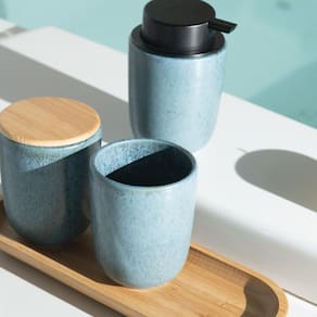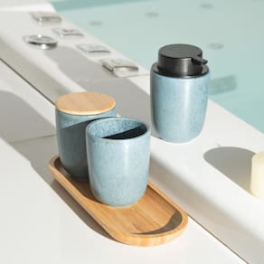 O Porta Algodão Marmorizado Com Tampa De Bambu Osaka Azul é perfeito para transformar a decoração do seu banheiro. Feito de cerâmica de alta qualidade, possui um acabamento marmorizado na cor azul marinho, que adiciona elegância e estilo ao ambiente. Sua tampa de bambu, além de trazer um toque sustentável, complementa a decoração do banheiro.