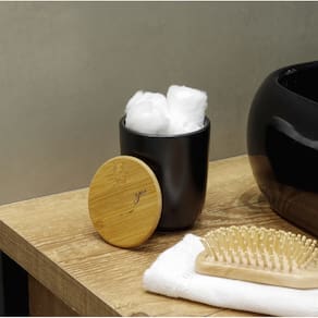• 1 Porta Algodão em Cerâmica com Tampa em Bambu
