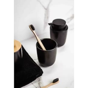 Porta Algodão Em Cerâmica Com Tampa Osaka Preto 8x10cm Ou -