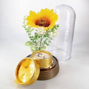 o girassol encantado é artificial de plástico idêntico ao natural e dura mais de 100 anos dentro da cúpula, é eterno ;