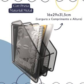 Organizador preto - porta pastas, porta revistas, porta arquivos e documentos Deixe seu escritório mais arrumado. Com esse organizador você gerenciará melhor todos os seus arquivos, documentos, livros e revistas tornando mais fácil o seu trabalho. E você vai evitar a perda de tempo procurando os itens de que precisa e que usa com frequência. Tudo estará a sua mão. Ele é multifuncional, você pode armazenar todos os tipos de arquivos a4 ou sulfite. Além de porta arquivo, também serve como porta livro, porta revista, cadernos, catálogos, folders e pastas. Pode ser no escritório, na ção, no caixa da empresa. Características: - grande capacidade de armazenamento, essencial para escritório - por ser sobre a mesa, fixado na parede ou sobre o chão. Especifícações: - material: metal - cor: preto - peso: 900gr - tamanho: 31,5x29x16cm altura x comprimento x largura Marca: Não Informado