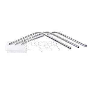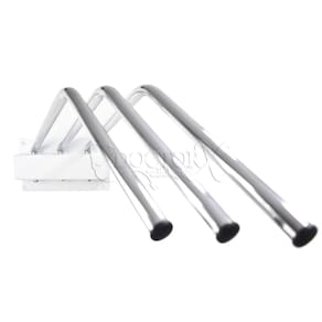 Porta avental para ser fixado à parede do tipo cabide basculante para acomodar até 3 aventais de cinza, com suporte construído em aço tratado e pintado e cabides basculantes em aço cromado. aventais não inclusos