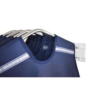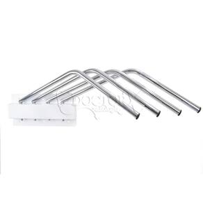 Porta avental para ser fixado à parede do tipo cabide basculante para acomodar até 4 aventais de cinza, com suporte construído em aço tratado e pintado e cabides basculantes em aço cromado. aventais não inclusos