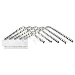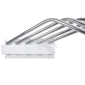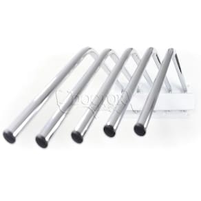 Porta avental para ser fixado à parede do tipo cabide basculante para acomodar até 5 aventais de cinza, com suporte construído em aço tratado e pintado e cabides basculantes em aço cromado. aventais não inclusos
