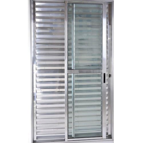 Tipo: Porta balcão de correr Local indicado: ambiente interno e externo (Produto com alta durabilidade) Quantidade de folhas: Três folhas, sendo uma fixa de alumínio, uma de alumínio móvel e uma de vidro móvel Espaço de abertura: Lateral Esquerda (Olhando do ambiente interno) Acompanha fechadura: sim, com um par de chaves Acompanha dobradiças: não Material da porta: Alumínio Conservação do produto: Limpar somente com água e sabão neutro Tonalidade: Alumínio natural brilhante Altura: 2,10 m (medidas finais contando com os batentes) Comprimento/Largura: 1,50 m (medidas finais contando com os batentes) Vão livre para abertura: aproximadamente 70 cm Profundidade: 12 cm (largura do batente) Batentes: sim, são feitos em alumínio Acabamento: sim Espessura do alumínio: 25 mm Espessura do vidro: 3 mm Tipo de vidro: liso esverdeado Vidro antirruído: Não Borracha de vedação nos vidros: Sim Fabricante: Comercial Pais e Filhos Garantia: 3 meses por defeito de fábrica (SOMENTE PARA GRANDE SÃO PAULO)