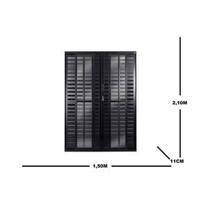 Porta Balcão Veneziana 6 Folhas Central Topsul 210x150 Preto Altura 210cm Largura 150cm Garantia de 5 anos Esquadrisul - A Porta balcão da Esquadrisul é projetada para fornecer o melhor que existe no quesito de janelas. Com seu design moderno e atemporal, ela é ideal para trazer luz e segurança para sua casa, com as matérias que foram utilizadas para este produto, um ótimo custo benefício. Vidro: Liso Altura: 210 cm Ambiente Principal: Quarto codigo_ean: 7898713620843 Cor: Preto Cor do Produto: Preto Cor Predominante: Preto Isolamento Acústico: Não Itens Inclusos: 1 Porta e Manual de Instalação Lado de abertura: Dupla Largura: 150 cm Largura do Batente: 11 cm Manual de Montagem e Instalação: https://product-hub-prd.madeiramadeira.com.br/858663/documents/cd65fce9-5d7d-4ffd-9f69-1c01ee0aeaf61447354manual.pdf Material Principal: Alumínio Necessita Montagem: Sim Origem do Produto: Nacional Peso: 40 kg Tamanho: 210x150cm Tipo de Porta: Balcão Tipo de Vidro: Liso Vidro incluso: Sim Ean: 7898713620843