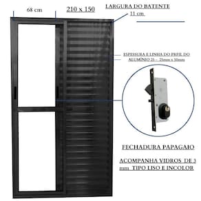 Você irá encontrar esta porta balcão alumínio em 3 medidas: 210cm de altura, com as larguras de 120, 150 e 160 cm.