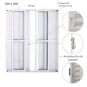Acompanha vidros de 3mm tipo liso e incolor. Vidro: Liso Ambientes Recomendados: Externo;Interno Acompanha Batedor: Não Acompanha Batente: Sim Acompanha Dobradiça: Não Acompanha Fechadura: Sim Acompanha Guarnição: Não Acompanha Manual de Instalação: Sim Acompanha Puxador: Não Acompanha Trinco: Sim Altura: 210 cm codigo_ean: 7898683660047 Cor: Branco Cor do Batente: Branco Cor do Produto: Branco Cor Predominante: Branco Dimensão da Máquina da Fechadura: 25.0000 Elétrica: Não Escala de Brilho: Semi-Brilho Espessura do Vidro: 3 mm Isolamento Acústico: Não Itens Inclusos: 1 Porta Lado de abertura: Central Largura: 200 cm Largura do Batente: 11 cm Linha ou Coleção: Linha 25 Manual de Montagem e Instalação: https://product-hub-prd.madeiramadeira.com.br/859548/documents/5cf0a72f-c0b4-4d4a-906a-62b782731f1astruCOesdeinstalaCAobalcAo.pdf Material do Batente: Alumínio Material Principal: Alumínio Necessita Montagem: Não Número de Folhas: 06 Origem do Produto: Nacional Peso: 79 kg Possui Grade: Não Tamanho: 210 x 200 cm Textura da Porta: Veneziana Tipo de Parede: Alvenaria Tipo de Porta: Balcão Tipo de Vidro: Liso Vidro incluso: Sim Marca: Esquadrias Bergamo Ean: 7898683660047