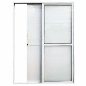 A porta Balcão Lambril possui 3 folhas, sendo 2 de lambril (1 móvel e 1 fixa) e 1 de vidro.