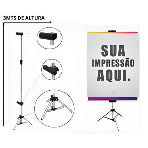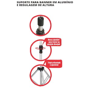 Porta banner Fixo 3mts Tripé articulado em aluminio e garras