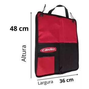 Comporta cerca de 10 pares de baquetas Bolso interno e externo Tiras auxiliares para fixar no surdo Capa e forro em cordura Camada térmica Altura- 49 cm largura fechado-19 cm Largura aberta-37 cm Imagens apenas Ilustrativas