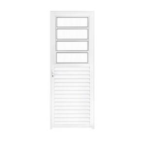 Porta Basculante (Giratória) Lado Direito - Alumínio Branco - Linha 25. Porta do tipo Giratória com abertura para o Lado DIREITO. Modelo Basculante em Perfil de Alumínio Branco da Linha 25. Com Vitro Basculante (vidro inferior fixo e três basculante móveis). Linha Forte e Reforçada com excelente acabamento. Pode ser usada em ambientes Internos ou Externos. Não enferruja. * Antes de efetuar a compra, certifique-se de que o lado de abertura da porta está correto. Temos imagens ilustrativa para auxiliar sua compra de forma simples e assertiva.