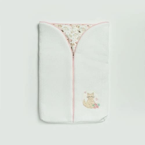 O porta bebê Hug é perfeito para aquecer e deixar o bebê protegido durante o sono. Além disso, a troca de fraldas pode ser feita sem retirar o bebê completamente do porta bebê, facilitando a vida da mamãe. Suedine, bordado exclusivo HUG, fechamento em botão de pressão e etiquetas personalizadas.