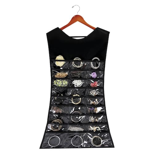 Descrição do produto - Ideal para organizar closet, - Organizar jóias e bijuterias, - Compartimentos: frente e verso, Características do produto Medida do Produto: 46 x 86 cm Medida do Produto Embalado: 22 x 28 x 2,5 cm Cor: Preto Portátil: Não Ajuste de Altura: Não Dobrável: Sim Ean: 7896205202164