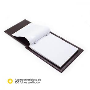 Produto Artesanal Fabricado no Brasil; Revestimento em Material Sintético; Costurado; Porta Canetas; Capa e contracapa; Ferragem de duas argolas; Acompanha Bloco com 150 folhas serrilhadas; Modelo: 1584 Marca: Incorpast