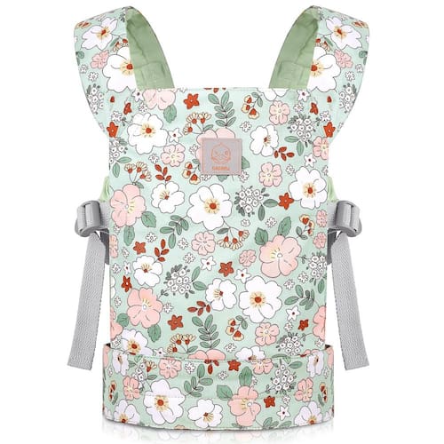 Porta-bonecas GAGAKU, porta-bonecas, frontal e traseiro, para meninas - verde - camélia - [100% algodão] Este porta-bonecas bem feito adota material 100% algodão. Leve, macia e respirável, é segura e confortável para crianças pequenas; - [Design ajustável] A bolsa interna é ajustável para caber em bonecas de diferentes tamanhos. A dimensão das bonecas deve ser menor que 24,8 polegadas; - [Fácil de usar] A estrutura simples facilita o uso, a fivela superior adota o design de fivela de liberação central, as crianças podem abri-la ou fechá-la facilmente; - [Tamanho] 0,18 kg, 5,51 × 9,84 × 12,8 polegadas (L × W × H). A altura das crianças deve ser maior que 35 polegadas; - [Recomendação] Cor doce com estampa fofa, excelente acessório para carregar bonecas ou brinquedos de pelúcia. Este porta-bonecas NUNCA deve ser utilizado para transportar crianças ou animais vivos.