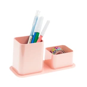 Porta Caneta Lápis Clips Organizador de Mesa Rosa Dello - ideal para organizar sua mesa de escritório e home office - Espaço para canetas e clips - Material: Plástico injetado - Tamanho: 17 x 7 x 8 cm - Marca: Dello - Cor: Rosa