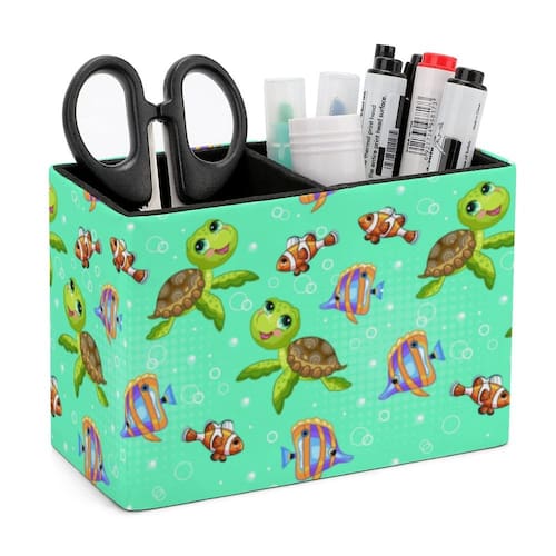 Niapessel Suporte de caneta com estampa tropical de peixe e tartaruga para organizador de mesa A Niapessel é uma empresa de personalização profissional com muitos anos de experiência em design e produção, não somos apenas porta-lápis personalizados, mas também personalizamos sua vida feliz! Portanto, fornecer produtos da mais alta qualidade e designs exclusivos é a essência do nosso trabalho. Você sempre pode encontrar novas ideias na Niapessel!. Incluído na embalagem: 1 porta-lápis Cliente em primeiro lugar Estamos empenhados em oferecer a melhor experiência ao cliente, se houver algum problema, não hesite em contactar-nos. Responderemos às suas perguntas prontamente até que esteja satisfeito. Fique tranquilo ao comprar! - MATERIAL PREMIUM: A superfície do porta-canetas é feita de couro PU de alta qualidade, e o interior e a parte inferior são feitos de flanela macia, que é durável e ecológica. - 2 compartimentos individuais: este porta-canetas para mesa tem 2 compartimentos para organizar seus pertences em seções, para que sua mesa fique livre de bagunça, pareça organizada e facilita encontrar o que você está procurando. - Suporte de lápis multifuncional: nossos porta-lápis podem não apenas armazenar artigos de papelaria de estudo e escritório, como: lápis, canetas, réguas, apontadores de lápis, tesouras, borrachas, fitas, etc. Também pode ser utilizado como um suporte de ferramentas de maquiagem para armazenar pincéis de maquiagem, canetas corretivas, rímel, batom, esmalte de unha, etc. Esta é definitivamente uma caixa de armazenamento que você deve ter para trazer conveniência à sua vida. - DESIGN PERSONALIZADO: Este porta-lápis de mesa é projetado com muitos temas interessantes e únicos, elementos de padrão rico para você escolher, para mais opções, visite a loja KOKOBF. - Presente perfeito: nossos porta-lápis e porta-canetas podem ser um presente criativo para estudantes, professores, colegas. O requintado porta-canetas de couro não só tem a função de armazenamento e organização, mas também pode ser utilizado como decoração de mesa.