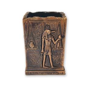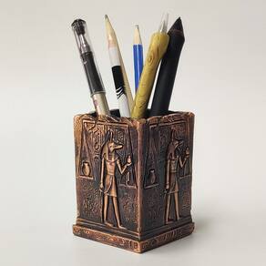 Material: Resina Tamanho: 6* 6* 9 cm Peso: 225 g Design egípcio antigo — apresenta esculturas inspiradas em anúbis e hieróglifos, trazendo uma estética egípcia misteriosa e vintage para qualquer mesa. Material de resina durável — Feito de resina de alta qualidade com acabamento em bronze antigo, resistente e duradouro para o uso diário. Compacto e prático — tamanho 6x6x9cm, leve com 225 g, ideal para organizar canetas, lápis, pincéis de maquiagem ou pequenas ferramentas. Organizador multiuso — funciona como um pote para canetas, porta-lápis ou recipiente para pincéis cosméticos enquanto serve como peça decorativa de mesa. Perfeito para decoração de escritório e casa — Adequado para mesas, salas de estudo ou penteadeiras, combinando armazenamento com estilo cultural e artístico.