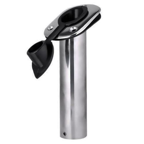 Porta caniço inox inclinado com tampa em nylon Porta vara caniço com 30 graus de inclinação, com tampa em nylon Facilidade e agilidade para sua pescaria em caiaque, barco, lanchas, não prejudica a remada, tendo sempre fácil acesso ao caniço de sua vara de pescar.