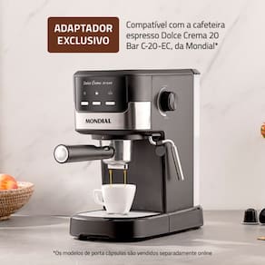 - COMPATÍVEL COM A CAFETEIRA ESPESSO C-20-EC: O adaptador* de cápsulas NESPRESSO® é compatível com a Cafeteira Espresso Dolce Crema 20 Bar, C-20-EC, da Mondial. Desfrute de um café premium com a praticidade da cafeteira espresso na sua casa! *Os modelos de porta cápsula são vendidos separadamente online.