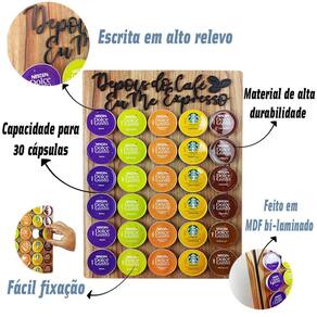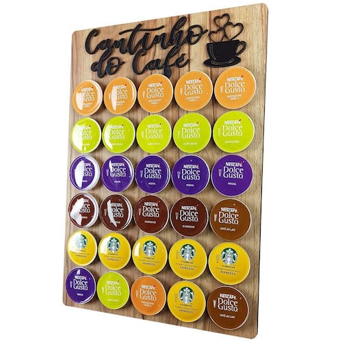 Marca de Cápsula: Dolce Gusto Marca: Facris Material: MDF Quantidade: 30 cápsulas Altura: 42cm Largura: 30cm Profundidade: 3cm Peso: 900gr.
