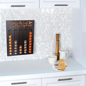 Nada como tomar aquele café expresso feito na hora é E ainda mais poder escolher de forma prática seu sabor predileto, já pensou Pensando nisso trazemos aqui para você nosso exclusivo e moderno porta cápsulas para cafeteira NESPRESSO. Um produto para quem gosta de organização e praticidade, pois com ele você organiza suas cápsulas e ainda por cima decora seu cantinho do café, deixando-o ainda mais agradável   Uma peça com design moderno feita em MDF pintado com tinta automotiva de Altíssima Qualidade e acabamento Diferenciado. As frases confeccionadas neste porta cápsulas são feitas em alto relevo com corte a laser, que faz com que a peça tenha um requinte especial e diferenciado no mercado. Compre já o seu
