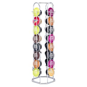 Tomar um café podendo escolher entre vários sabores é sensacional, desde que você encontre o sabor que quer. Pra isso, nada melhor do que um Porta Cápsulas para organizar os sabores do seu café. Compatível com o Café Dolce Gusto, esse suporte tem acabamento cromado e espaço total para 32 cápsulas. Base fixa com quatro lados, ou seja, cabem 08 cápsulas em cada lado, fica ainda mais fácil de organizar. Você pode organizar cada lado com um sabor diferente do seu café.