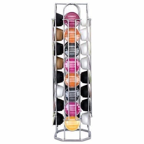 Porta Capsulas Modelo Torre Compatível Dolce Gusto Tomar um café podendo escolher entre vários sabores é sensacional, desde que você encontre o sabor que quer. Pra isso, nada melhor do que um Porta Cápsulas para organizar os sabores do seu café. Compatível com o Café Dolce Gusto, esse suporte tem acabamento cromado e espaço total para 32 cápsulas. Base fixa com quatro lados, ou seja, cabem 08 cápsulas em cada lado, fica ainda mais fácil de organizar. Você pode organizar cada lado com um sabor diferente do seu café. Produzido em aço carbono Acabamento cromado de alto brilho Para limpeza, não utilize produtos abrasivos para não riscar o acabamento. Medidas do Porta Cápsulas Cromado 32un Dolce Gusto: Comprimento: 13cm Largura: 13cm Altura: 47cm Ean: 7010615536422