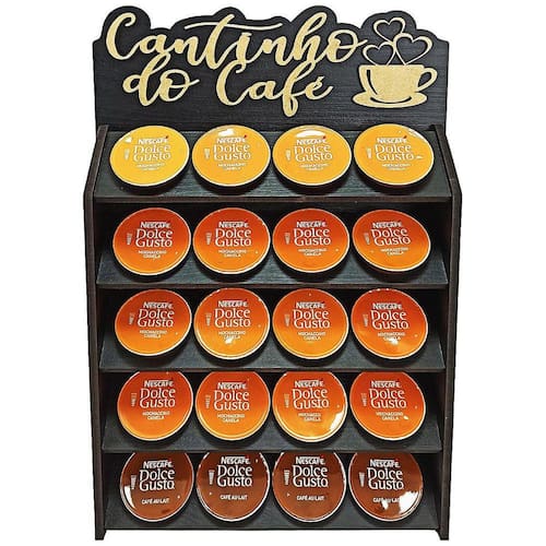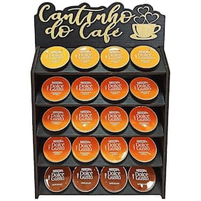 Porta Capsulas Dolce Gusto Suporte Para Capsulas de Mesa Nada como tomar aquele café expresso feito na hora é E ainda mais poder escolher de forma prática seu sabor predileto, já pensou Trazemos aqui para você nosso exclusivo e moderno porta cápsulas para cafeteira DOLCE GUSTO. Um produto para quem gosta de organização e praticidade, pois com ele você organiza suas cápsulas e ainda por cima decora seu cantinho do café, deixando-o ainda mais agradável Uma peça com design moderno feita em MDF bi-laminado da Altíssima Qualidade e acabamento impecável. As frases confeccionadas neste porta cápsulas são feitas em alto relevo com corte a laser, que faz com que a peça tenha um requinte especial e diferenciado no mercado. Compre já o seu ESPECIFICAÇÕES: Marca: Facris Material: MDF bi-laminadoQuantidade: 20 cápsulas Altura: 38cmLargura: 26cmProfundidade: 6cmPeso: 1000gr. IDEAL PARA: Uso domésticoCafeteriasComplementos de copa/cozinha BaresHotéisRestaurantesPadarias Obs.: Cápsulas de café não inclusas.