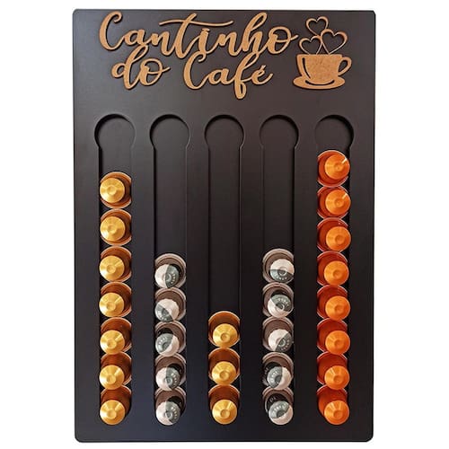 Porta Cápsulas Nespresso - Preto - Cantinho do Café Nada como tomar aquele café expresso feito na hora é E ainda mais poder escolher de forma prática seu sabor predileto, já pensou Pensando nisso trazemos aqui para você nosso exclusivo e moderno porta cápsulas para cafeteira NESPRESSO. Um produto para quem gosta de organização e praticidade, pois com ele você organiza suas cápsulas e ainda por cima decora seu cantinho do café, deixando-o ainda mais agradável Uma peça com design moderno feita em MDF pintado com tinta automotiva de Altíssima Qualidade e acabamento Diferenciado. As frases confeccionadas neste porta cápsulas são feitas em alto relevo com corte a laser, que faz com que a peça tenha um requinte especial e diferenciado no mercado. Compre já o seu