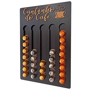 Porta Cápsulas Nespresso - Preto - Cantinho do Café Nada como tomar aquele café expresso feito na hora é E ainda mais poder escolher de forma prática seu sabor predileto, já pensou Pensando nisso trazemos aqui para você nosso exclusivo e moderno porta cápsulas para cafeteira NESPRESSO. Um produto para quem gosta de organização e praticidade, pois com ele você organiza suas cápsulas e ainda por cima decora seu cantinho do café, deixando-o ainda mais agradável Uma peça com design moderno feita em MDF pintado com tinta automotiva de Altíssima Qualidade e acabamento Diferenciado. As frases confeccionadas neste porta cápsulas são feitas em alto relevo com corte a laser, que faz com que a peça tenha um requinte especial e diferenciado no mercado. Compre já o seu