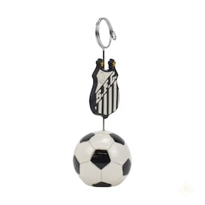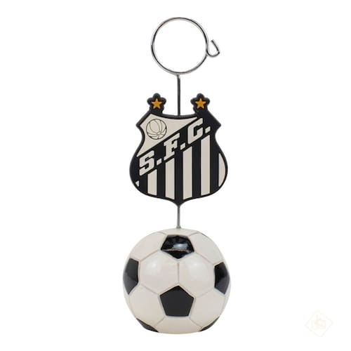 Informações do Produto: Portão cartão de recados com 12,5cm de altura no formato de uma bola na base com escudo do Santos no meio.
