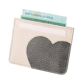 Estrutura do corpo: Construção em couro macio de espessura média e toque macio. Coração com arte sobreposta. Logomarca em destaque. Dimensões: 10,5 x 08 x 01 cm largura x altura x espessura Peso aproximado: 30 gramas Material: couro