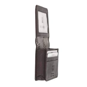 Feito em couro macio com seixo, este estojo de cartão durável e de aparência nítida também funciona como uma carteira minimalista. A tecnologia de defesa RFID integrada protege sua identidade e cartões de crédito. Compartimentos e detalhes: 1 compartimento principal 1 bolso traseiro com zíper 3 compartimentos para cartões 1 protetor de cartão RFID para janela de identificação Fabricado na Índia Material: 100% couro Dimensões: 4,1 L x 2,8 A x 0,8 P polegadas Cuidado: use um lenço macio com detergente para couro ou loção para as mãos. Apenas para limpeza local.