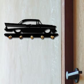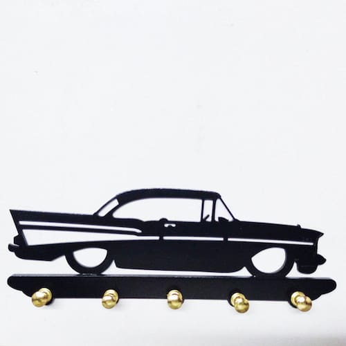 Decore sua casa ou presenteie seus amigos. Lindo Porta Chaves Fabricado com Mdf de 1a. qualidade sua pintura é a mesma utilizada em automóveis com aplicação de primer, lixamento e aplicação de tinta Laca automotiva na cor clássica preto Cadillac com acabamento acetinado. MDF de 3 mm e 6mm na base do suporte dos pinos. Produto resistente, leve e de fácil instalação. Especificações Técnicas: Medidas: comprimento: 22 cm altura: 2 cm largura: 10 cm Material: mdf 3mm Cor: preto Tema: carro Formas de instalação: basta utilizar fitas dupla face Quantidade: 1 unidade Características específicas: pinos dourados com acabamento