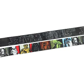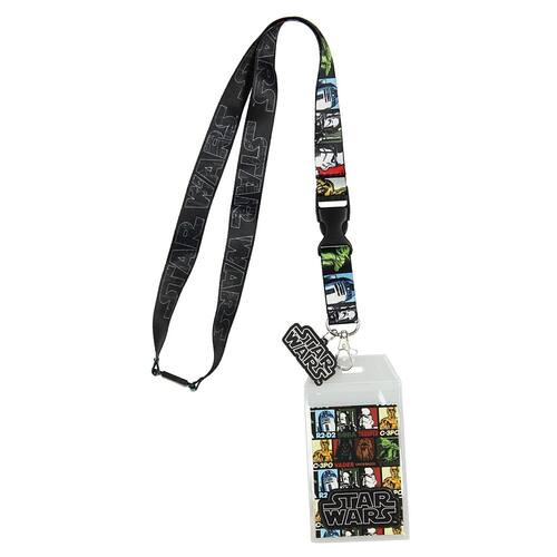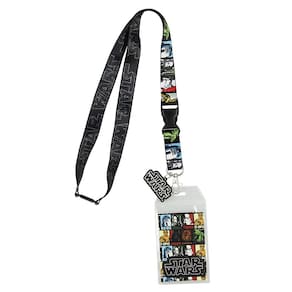 Star Wars é a série de ficção científica de todos os tempos. Com seu tema clássico do bem versus o mal e as provações e tribulações de seus personagens, tornou-se parte de nossas vidas. De Wookies a robôs, os personagens são familiares para nós. O bem representado pela Força está em constante batalha com o mal representado pelo Dark Side. Este cordão apresenta um design de vários personagens Star Wars. Inclui uma capa transparente para identidade, pingente de borracha com logotipo Star Wars, adesivo colecionável e clipe de liberação rápida.