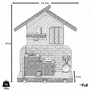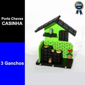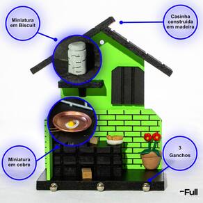 Especificações técnicas: - Porta-Chaves fabricado em madeira. - Miniaturas fabricadas em cobre e biscuit. - Dimensões do porta chaves: 18cm (A) x 13cm (C) x 7cm (P). - Peso: 250g. - Cor: verde. - Conteúdo da embalagem: 1 porta-chaves em formato de casa, 1 frigideira (miniatura), 1 cesto de pães (miniatura), 1 pote (miniatura), 1 vaso de flor (miniatura). - Quantidade de ganchos: 3 ganchos.