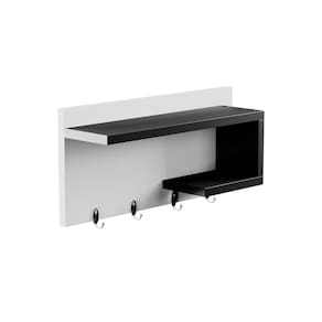 Produzido em madeira MDP 15mm na cor Branco com Preto, adequando-se a todos os tipos de decorações. Produto acompanha 2 parafusos e buchas para fixação na parede.