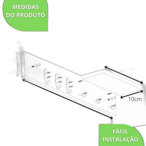 Largura: 60cm Altura: 10cm Espessura: 1,5cm Largura da Prateleira: 10cm Comprimento da Prateleira: 25cm Espessura da prateleira: 1,5cm