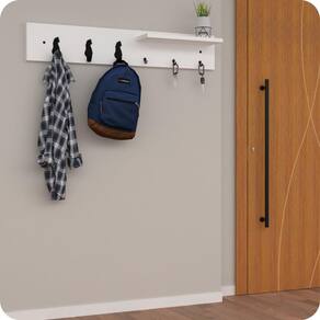 Além das chaves, também é possível guardar outros objetos como blusas, bonés, carteira, celular ou decorar com vaso de plantas ou porta-retratos.