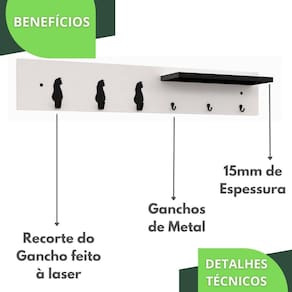 Modo de instalar: Parafusar os ganchos na madeira, furar a parede e parafusar o porta chaves na parede.